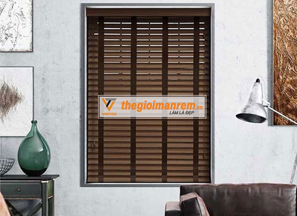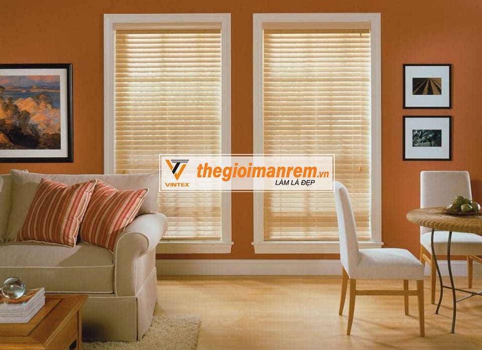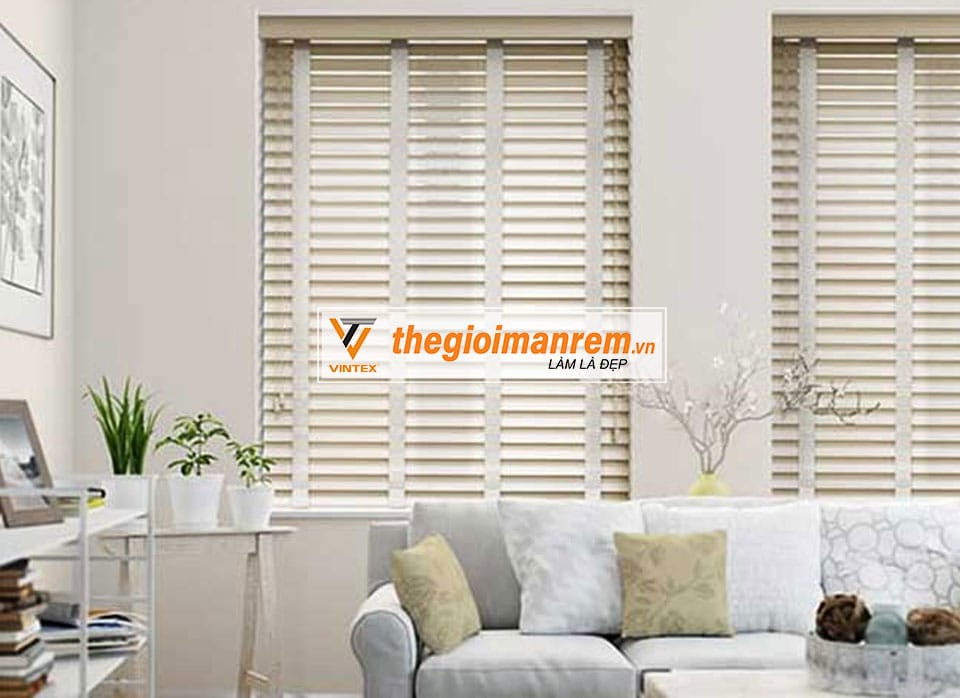 Rèm sáo gỗ thường được lắp đặt ở cửa sổ phòng khách để tạo sự hài hòa cho không gian.